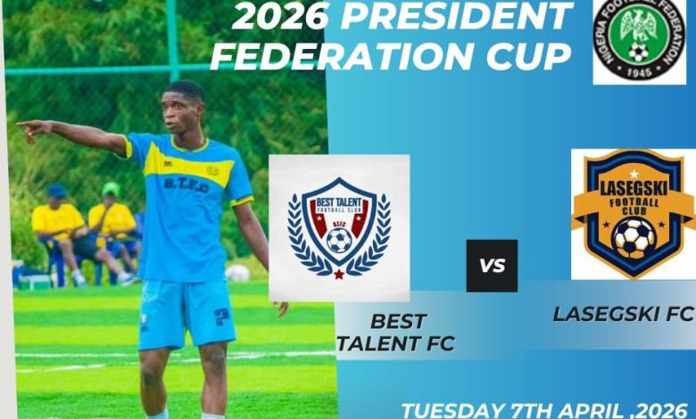 The Nationwide League One outfit, Best Talent Football Club of Mowe will today, Tuesday, 7th April, 2026 lock horns with Lasegski FC at MKO Abiola Sports Arena by 3pm in the Ogun state President Federation Cup.