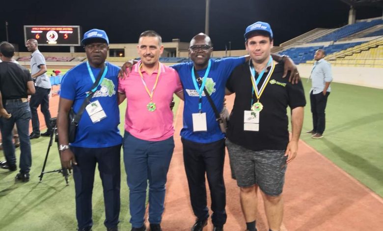 Photo: L-R Godson Abba Ekadi of AYC, Luciano Gonçalves president Portuguese Referees Association, Newman Ebiegberi of AYC, Daniel Curcio president Referee Abroad at the maiden edition of the tournament in Cape Verde.