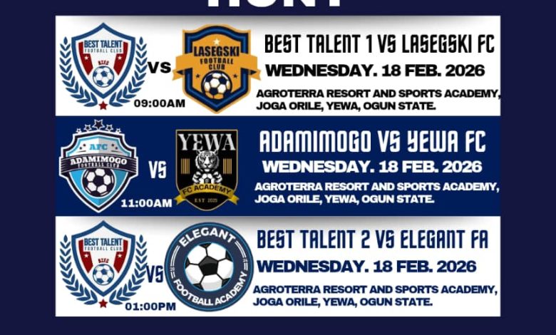 On Thursday, 19th February, 2026, it’s going to be a clash of the titans between Best Talent FC and Adamimogo FC while Lasegski and Elegant FA will engage each others.Yewa FC and Best Talent 1 will crown it up.