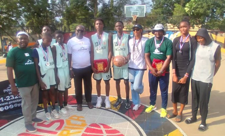 Photo: Dr. Lawal (m) in a group photograph with outstanding players of the Musa Kida basketball tournament