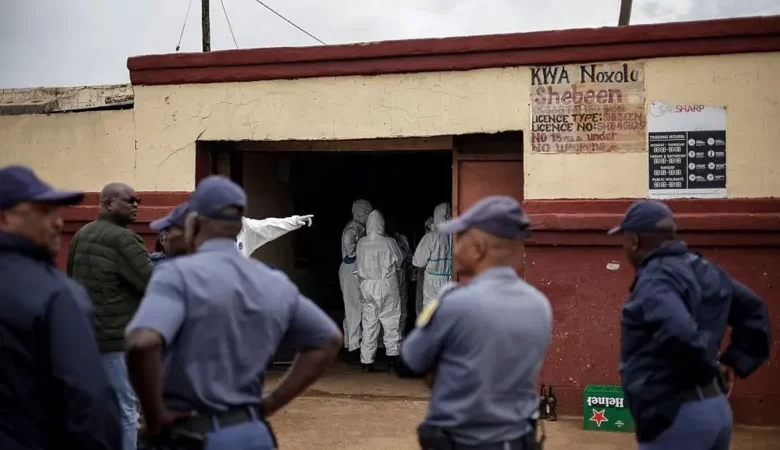 Police launched a manhunt for the 12 unidentified gunmen who had opened fire at patrons at around 01:00 local time Saturday in the Bekkersdal establishment, near Johannesburg.