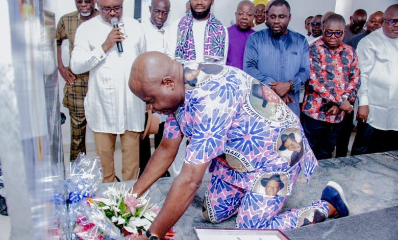 Governor of Bayelsa State, Senator Douye Diri, and his siblings, on Friday, honoured the memory of their father, Pa Abraham Joseph Michael Diri, at a low-key memorial service held at the mausoleum of the family’s patriarch in Sampou community, Kolokuma/Opokuma Local Government Area of the state.