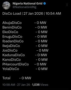 Information on its verified ‘x’ handle former known as twitter on Tuesday Monday at 10:52 indicated that no power was generated for distribution.