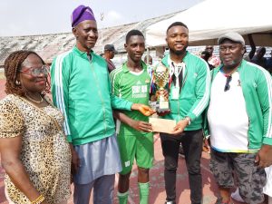 Meanwhile in the explosive football match, State Grammar School Surulere recorded a hard fought 1-0 victory over Wesley School for the Deaf to emerge champions .