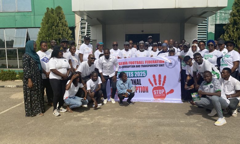 On the occasion of the 2025 International Anti-Corruption Day, members of the Management and Staff of the Nigeria Football Federation on Tuesday staged an enlightenment walk round the premises of the MKO Abiola National Stadium, Abuja.