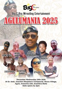 Nigerian professional wrestlers are now set to storm Agulu in Anaocha Local Government Area of Anambra State for the much talked about wrestling showdown tagged ‘ Agulumania’ 2025, slated for Wednesday, December, 24 in the town.