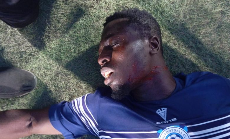 The report of violent attack to the extent of slitting the throat of a player, Abraham Nana of Barau FC is utterly false. The player was hurt by an object hauled from the stands and was treated on the pitch which led to the match being halted for a few minutes.