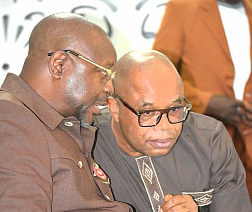 Photo: Special Adviser to President Bola Ahmed Tinubu on Media and Public Communications Sunday Dare (left) with NNL Chairman George Aluo during the NNL awards ceremony on Tuesday in Abuja.
