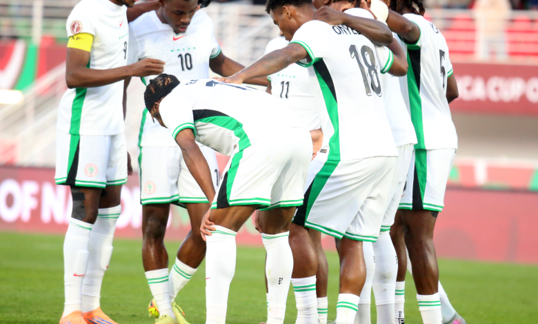 PHOTO: The Super Eagles bond before their final group phase clash with Uganda at the last AFCON tournament in Morocco.