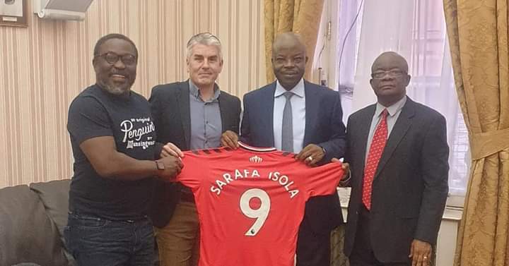 Towards that, Executive Director of Team Nigeria UK, David Doherty, led his management, alongside Southampton FC Director of Business and Community Development, Mark Abrahams, earlier today to pay a courtesy visit on Nigeria’s High Commissioner to the UK, His Excellency Ambassador Sarafa Isola.